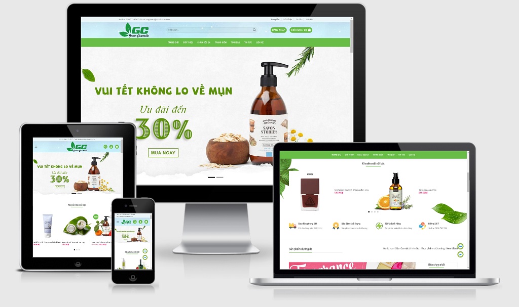 Theme Wordpress bán hàng mỹ phẩm mẫu số 13 – Green Cosmetic. Phù hợp làm mẫu giao diện website bán hàng: mỹ phẩm, dược phẩm, thực phẩm chức năng