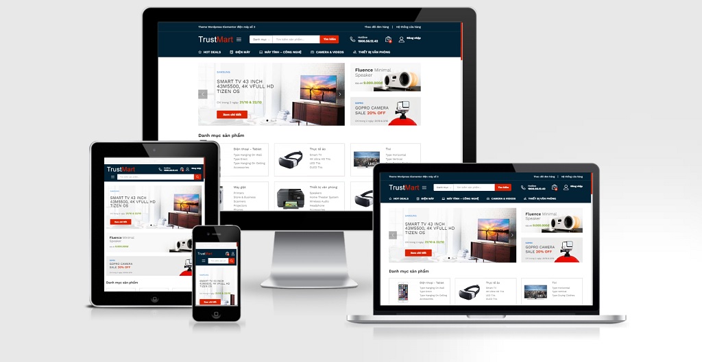 Theme WordPress Elementor điện máy mẫu số 2 – đã Việt Hóa, giao diện responsive, dễ dàng cài đặt và tùy biến bằng Elementor. Giao diện chuyên nghiệp, đa năng, hoàn toàn phù hợp cho các website ngành hàng khác: điện thoại, thương mại điện tử.