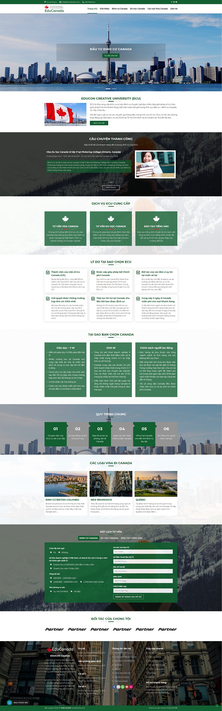 Theme WordPress giới thiệu công ty tư vấn du học Canada. Giao diện web đươc thiết kế đẹp, chuyên nghiệp, dễ cài đặt, sử dụng và tùy biến với UX Builder của theme Flatsome.