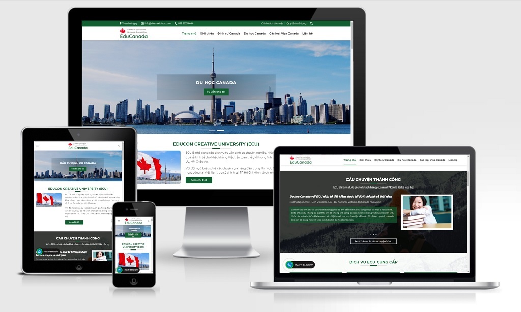 Theme WordPress giới thiệu công ty tư vấn du học Canada. Giao diện web đươc thiết kế đẹp, chuyên nghiệp, dễ cài đặt, sử dụng và tùy biến với UX Builder của theme Flatsome.