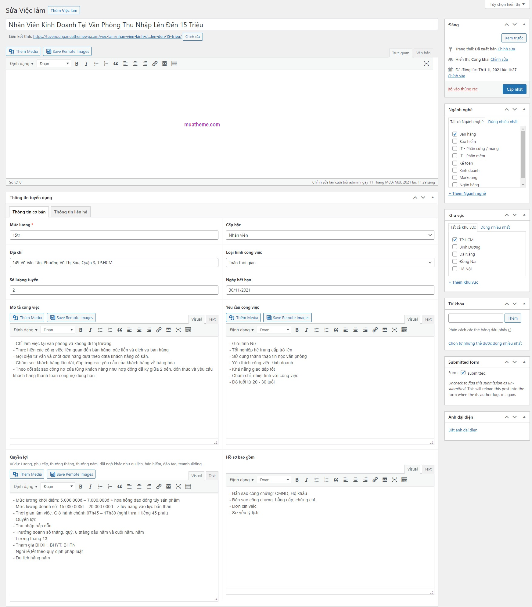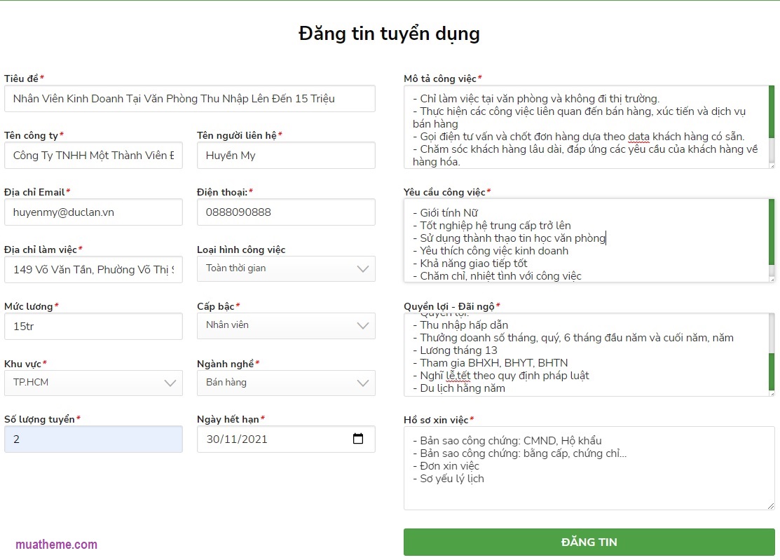 Theme WordPress tuyển dụng, việc làm mẫu số 1 – Giao diện web tuyển dụng này có thiết kế đơn giản nhẹ nhàng với điểm nhấn là tính năng đăng tin và duyệt tin.